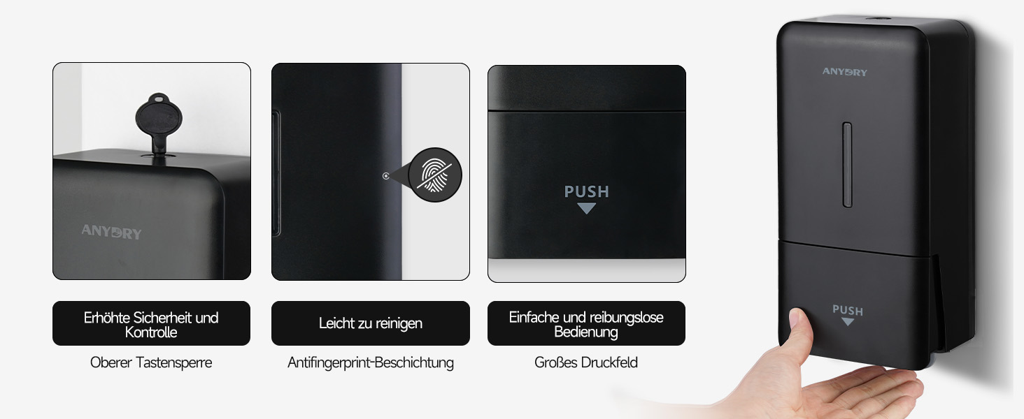 Der One-Touch Seifenspender von AnyDry wird strengen Tests unterzogen, um höchste Leistungs- und Sicherheitsstandards zu gewährleisten. Wir sind von der Qualität unseres Produkts überzeugt und bieten Ihnen eine Zufriedenheitsgarantie. Sollten Sie mit Ihrem Kauf nicht vollständig zufrieden sein, stehen wir Ihnen jederzeit zur Verfügung.