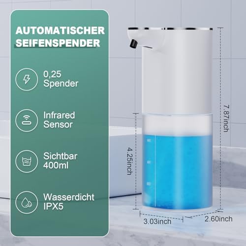 Automatischer Seifenspender 400ml von – Berührungslos & USB wiederaufladbar für Bad, Küche und BüroAutomatischer Seifenspender 400ml von – Berührungslos & USB wiederaufladbar für Bad, Küche und Büro