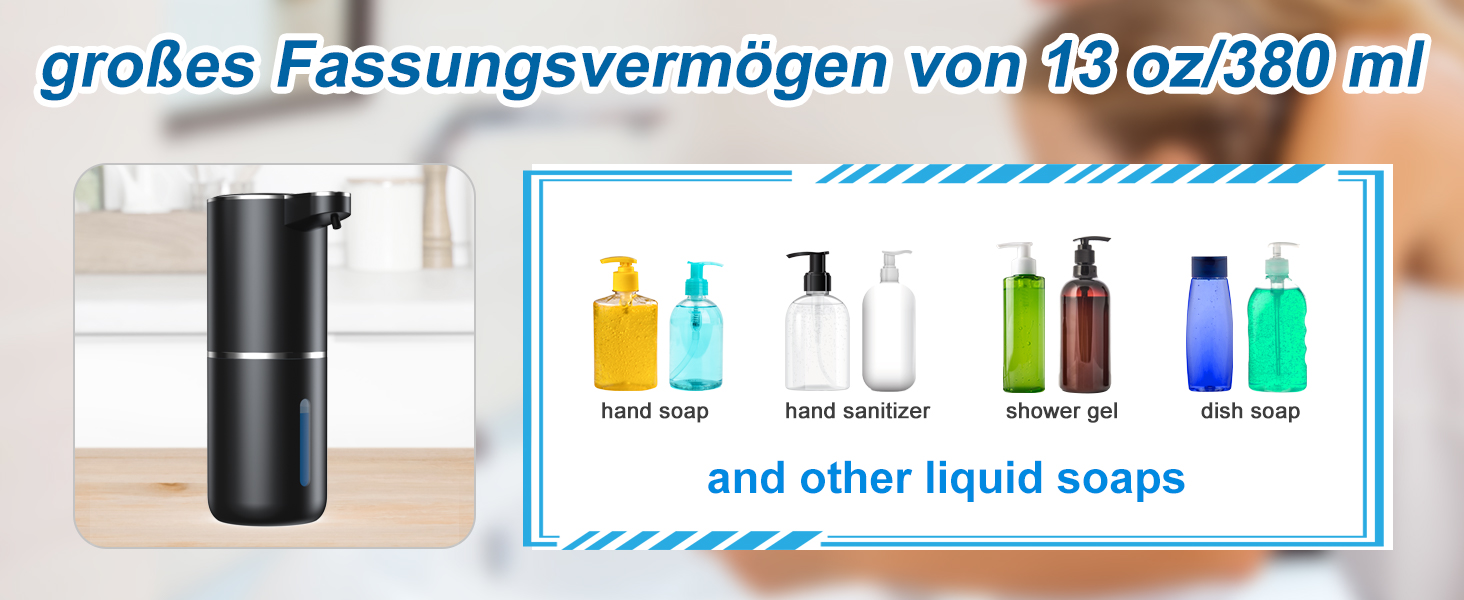 Mit einem Fassungsvermögen von 13,5 Unzen (380ML) sorgt der transparente Behälter dafür, dass Sie jederzeit den Füllstand im Blick behalten können. Das große Volumen bedeutet weniger häufiges Nachfüllen, was Ihnen Zeit spart. Beachten Sie jedoch, die Flüssigseife rechtzeitig nachzufüllen, um eine kontinuierliche Funktionalität zu gewährleisten.