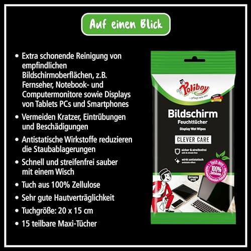Die einzigartige Kombination aus besonders dünnem, glattem Spezialmaterial und hochwertigem Alkohol gewährleistet eine streifenfreie und schlierenlose Reinigung. Genießen Sie strahlende Ergebnisse auf allen glatten Oberflächen – für einen klaren Blick und ein gepflegtes Zuhause.