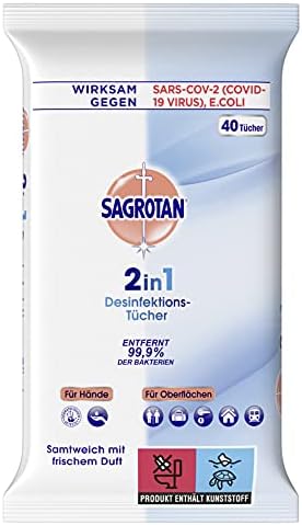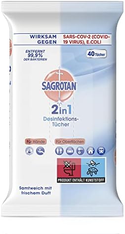 Sagrotan 2in1 Desinfektionstücher – effiziente Hygiene für Hände und Oberflächen – 40 feuchte Tücher in wiederverschließSagrotan 2in1 Desinfektionstücher – effiziente Hygiene für Hände und Oberflächen – 40 feuchte Tücher in wiederverschließ
